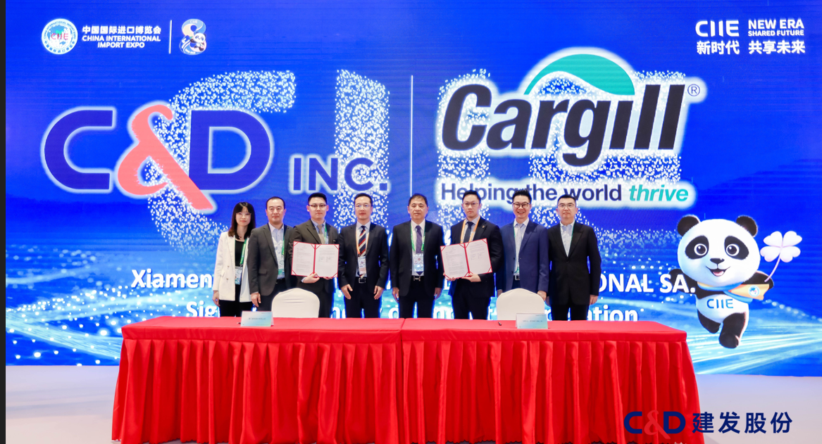 Xiamen C&D Inc. concluded agreements at the signing ceremony where seven globally prominent agribusiness and trading enterprises (including Louis Dreyfus Company, BTG PACTUAL, OLAM, CUTRALE TRADING SA, CHS INC., CARGILL, and SYNGENTA) participated. The total value of contracts signed during the event exceeded USD 5.2 billion. These accords spanned essential commodities including soybeans, corn, fats and oils, and cotton, expanding C&D's strategic presence across multiple agricultural categories and production zones while reinforcing its global supply chain coordination capabilities. Over eight consecutive years, Xiamen C&D Inc. has leveraged CIIE as an international platform to expand its partner network, solidify its business ecosystem, and facilitate synergy between China’s vast market and premium global resources.