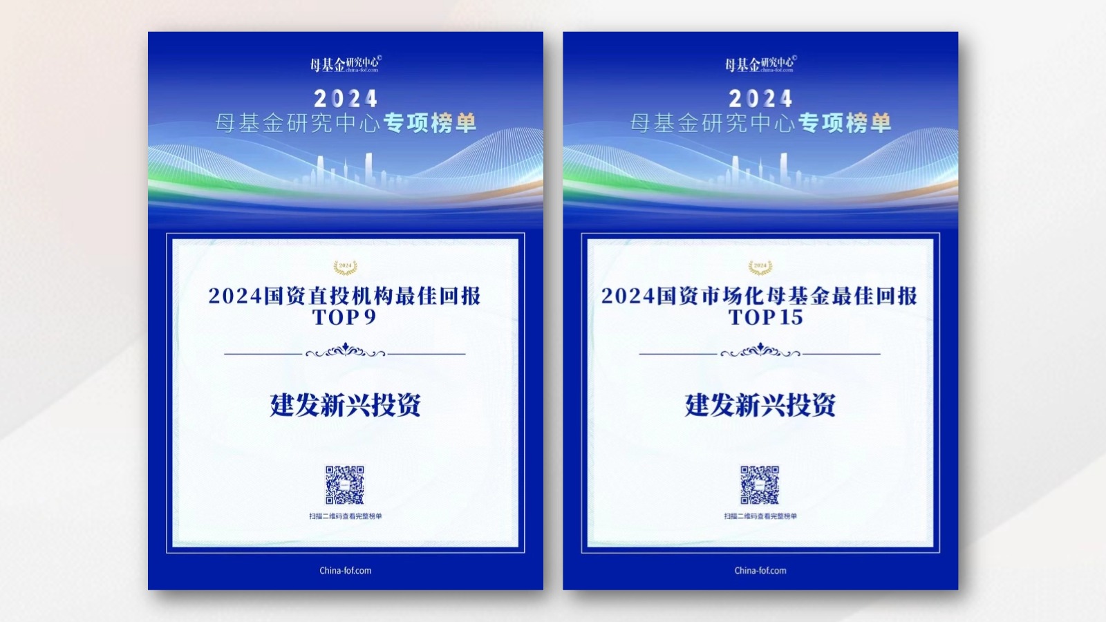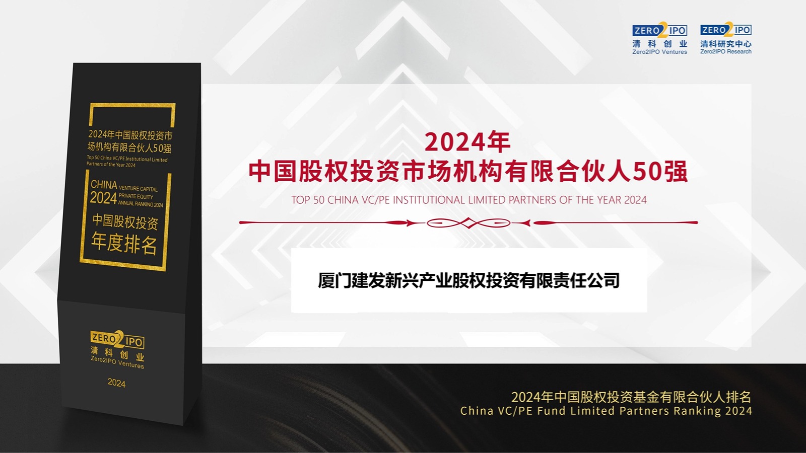 近期,建发新兴投资在清科、投中、36氪、母基金研究中心、动脉网|VB100等发布的2024年榜单中,获得“2024年度中国最佳母基金TOP20”“2024年度中国最受GP关注的母基金TOP2”“2024年中国最受关注S基金10”“2024国资市场化母基金最佳回报TOP15”、“2024国资直投机构最佳回报TOP9”等总计11个荣誉。