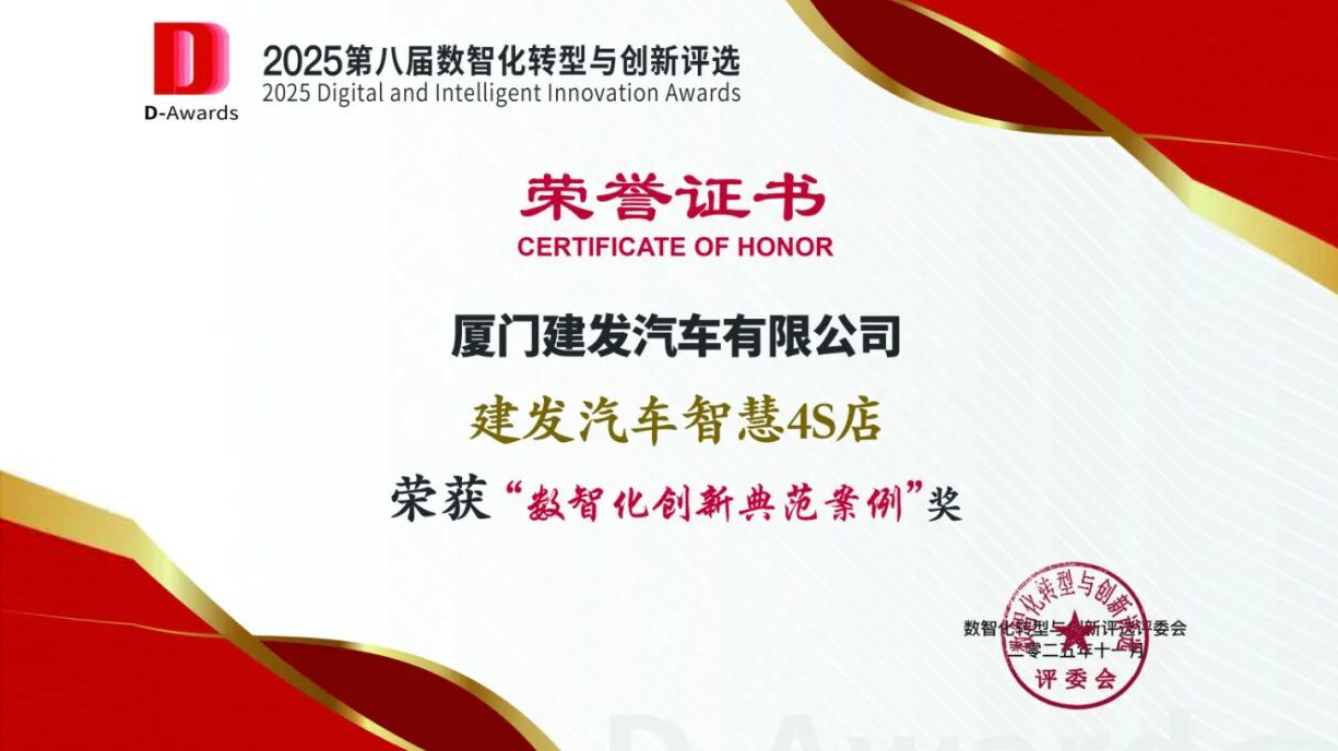 建发汽车“智慧4S店”项目获全国“数智化创新典范案例”奖